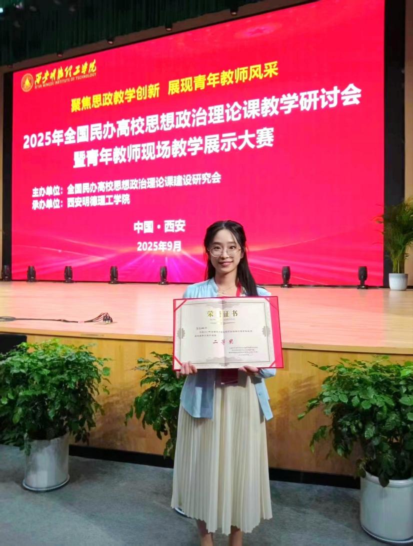 屠逸钿教师在2025年全国民办高校思想政治理论课青年教师教学展示大赛中荣获二等奖