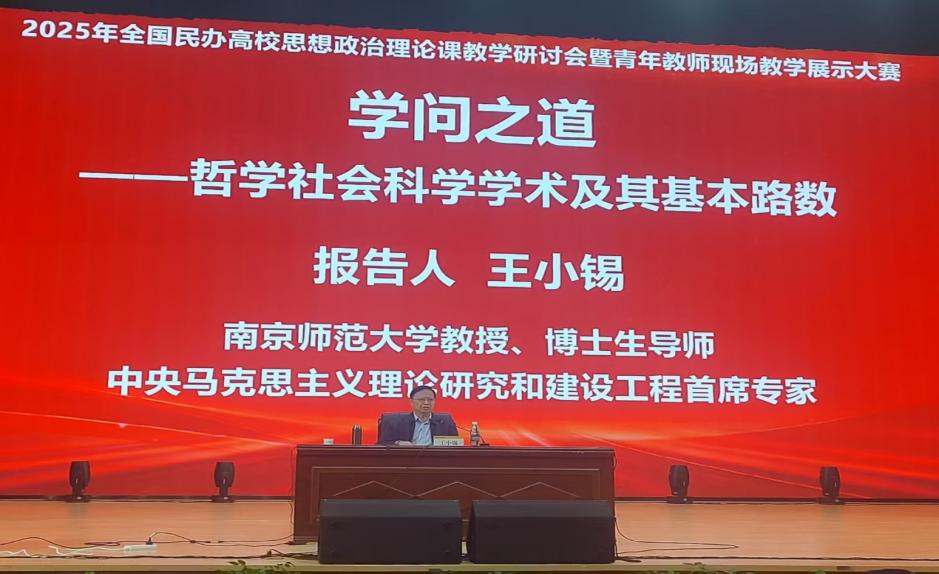 9月21日上午,史丽琴副院长和屠逸钿教师参加了全国民办高校思想政治理论课教学研讨会,学习了中央马克思主义理论研究和建设工程重大项目首席专家,全国民办高校思想政治理论课建设研究会名誉会长王小锡教授“学问之道—哲学社会科学学术及其基本路数”和东南大学马克思主义学院博士生导师、江苏省“毛泽东思想和中国特色社会主义理论体系”教学指导委员会委员孙迎联教授“思政课教学展示的‘道’与‘术’”两场主题报告,受益匪浅。
