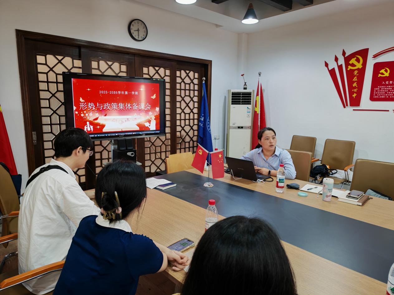 在集体备课会上,形势与政策课教研室主任史丽琴分享形势与政策课程的教学大纲、重难点解析及案例设计思路,新教师结合自身专业背景积极参与讨论,确保后期教学工作有序开展。