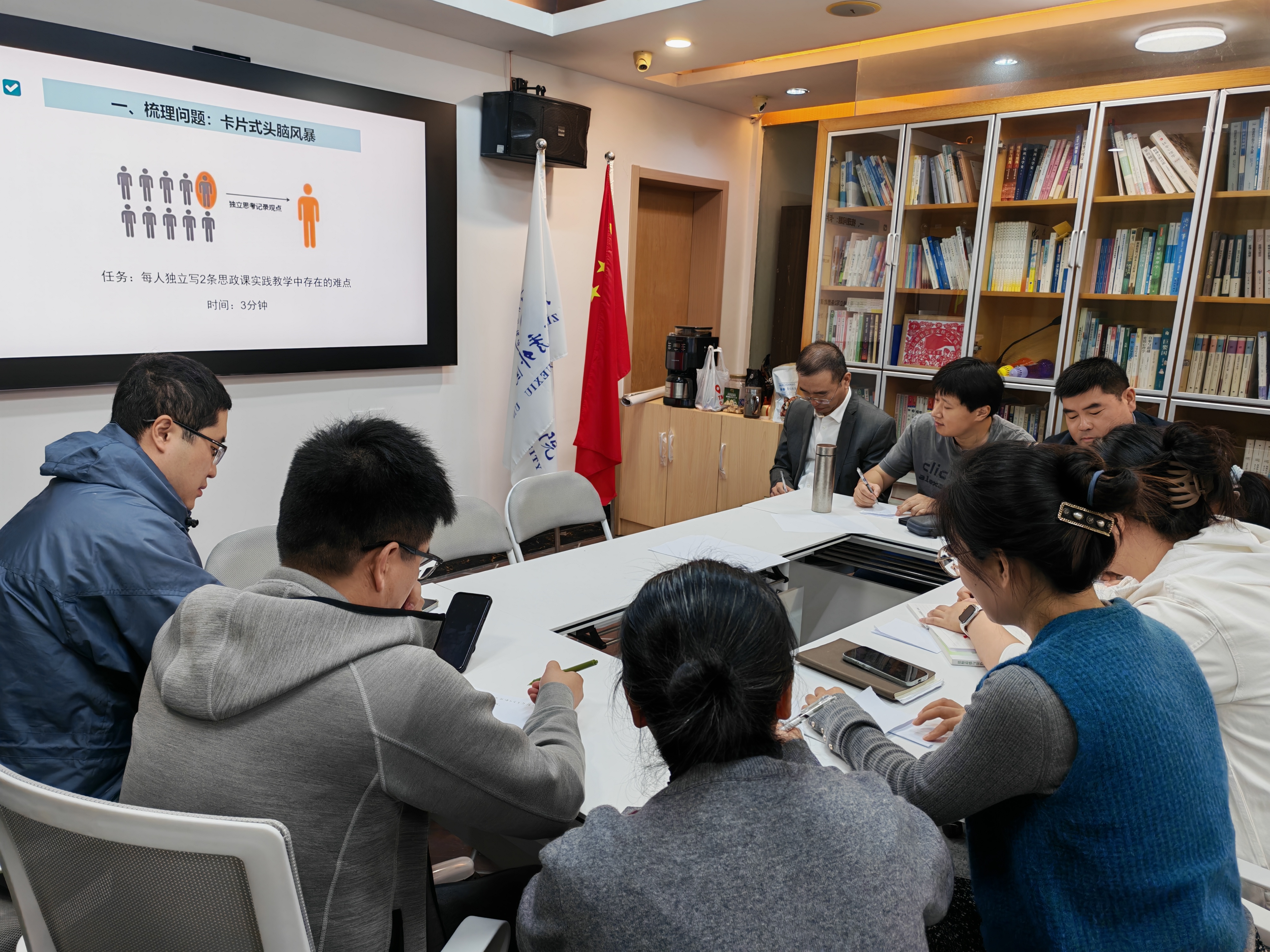 近日,为深化教育教学改革,创新思政课实践教学模式,马克思主义学院面向所有教师组织开展结构性学习培训。本次培训由赵海峰院长主持,他首先介绍了思政课实践教学的政策背景,以及在实践基地开展思政课教学的具体情况,然后教师们以教研室为单位分为六个小组,通过“卡片式头脑风暴”、“团队列名法”、“投票法”、“鱼骨图分析”等一系列结构化工具,系统梳理整合实践教学的痛点、分析问题,协同探求创新路径。这是推促进思政课教学模式创新的重要举措。