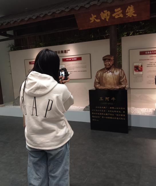 在酒史厅,师生们了解到黄酒起源于春秋时期。《吕氏春秋》记载了越王勾践“箪醪劳师”的故事。黄酒历经秦汉、唐宋、明清的发展,成为中国传统酒文化的重要代表。博物馆讲解员介绍,宋代是绍兴酒业的重要发展时期。北宋神宗熙宁年间,越州酒税岁额已高达十万贯以上,较附近各州高出一倍。南宋定都杭州后,绍兴酒业愈加繁荣,以至“城中酒垆千百家”。明清时期,绍兴酒品质不断提升。清代饮食典籍《调鼎集》对绍兴酒赞誉有加:“味甘、色清、气香、力醇之上品唯陈绍兴酒为第一”。《随园食单》则赞美绍兴酒“如清官廉吏,不参一毫假,而其味方真”。