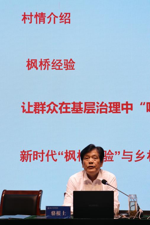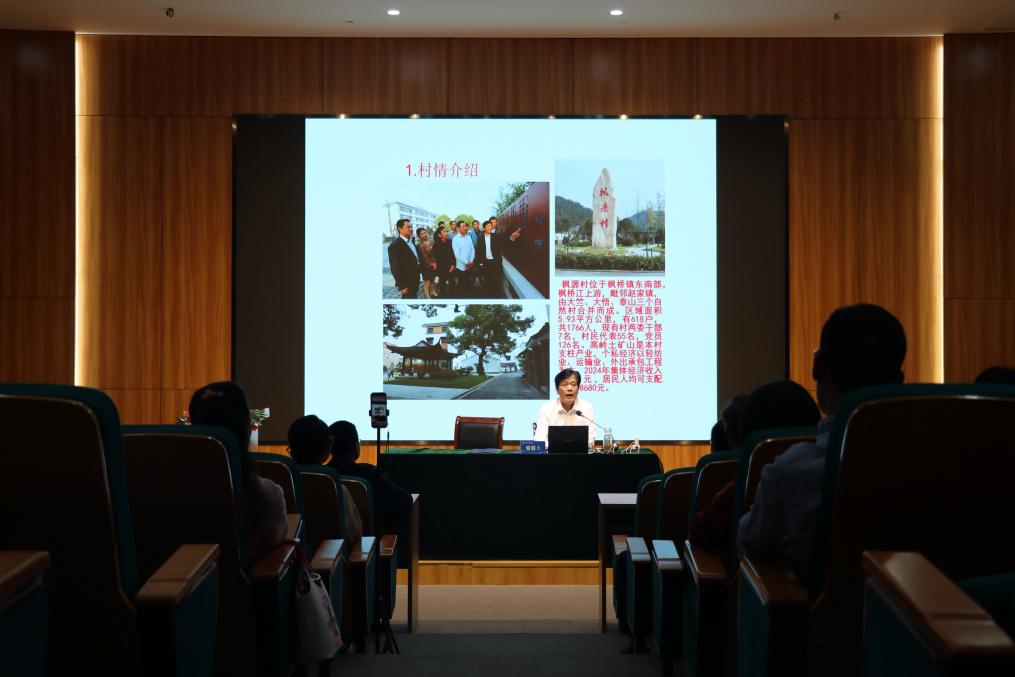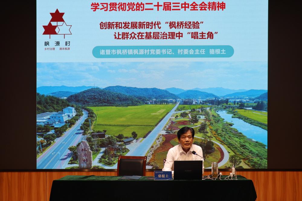 在主题讲座中,骆根土书记从枫源村的村情入手,详细阐述了枫源村作为“枫桥经验”发源地之一的独特地理优势。常年来秉持“枫桥经验”理念,持续创新发展,行政村合并20年以来保持了群众零上访、干部零违纪、百姓零刑事、村里零事故的优异记录。枫源村荣获全国先进基层党组织、全国村级议事协商创新实验试点行政村、浙江省民主法治村、浙江省清廉建设成绩突出单位、浙江省清廉村居建设示范村、浙江省未来乡村、浙江省健康村、浙江省美丽庭院特色村等多项荣誉,成为新时代基层治理的标杆典范。