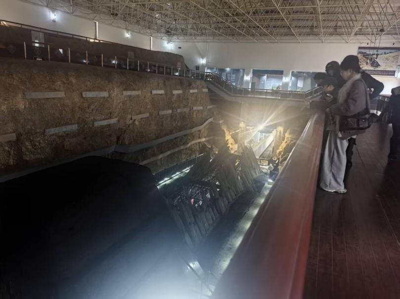 同学们驻足学习出土玉器、石器等文物遗存的介绍,回忆起课程教学时越国崛起、允常称王的历史故事,那段越国历史在眼前变得鲜活可感。大家认真记录、积极提问,深刻体会古越文化的独特魅力和中华文化的异彩纷呈,在触摸历史中增强文化自信。网络与新媒体2402班严睿怡同学提到:“看着眼前古朴的墓葬遗迹,不再是书本上冰冷的文字,那些遥远的吴越往事、古人的智慧,一下子变得鲜活起来。和同学一起边走边看,偶尔小声讨论着陵墓的形制,听老师讲解其中的历史知识,比课堂上的学习更直观,也更有意思。”